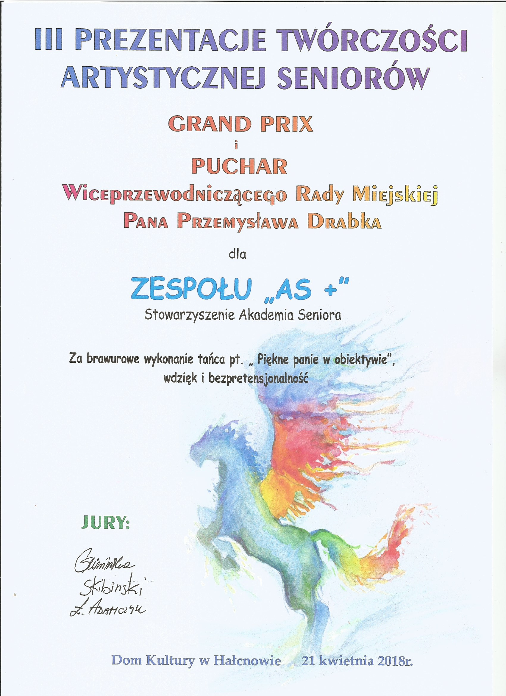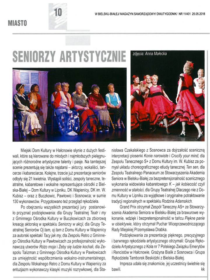 Ten taniec został zaprezentowany na Festiwalu Twórczości Artystycznej Seniorów w Hałcnowie.