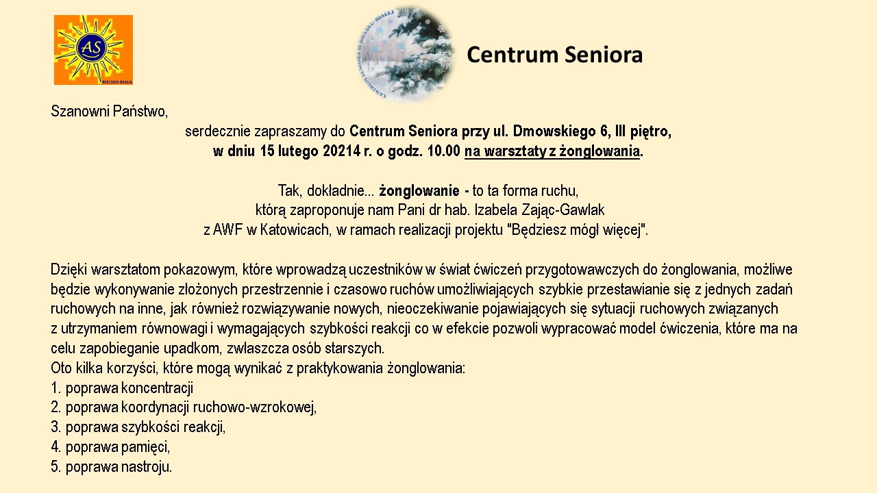 Centrum Seniora zaprasza na warsztaty