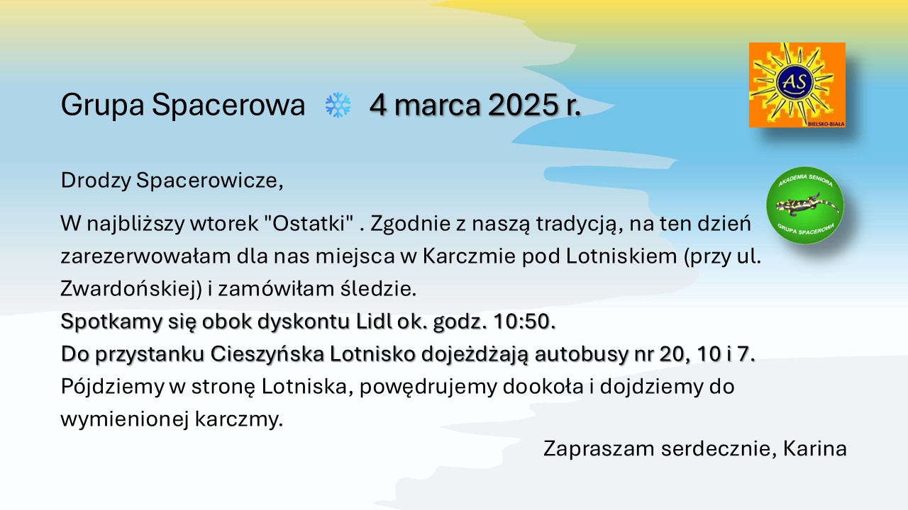 Kategorie: Grupa Spacerowa. Autor: Akademia Seniora. Dodaj zakładkę do bezpośredniego odnośnika.
