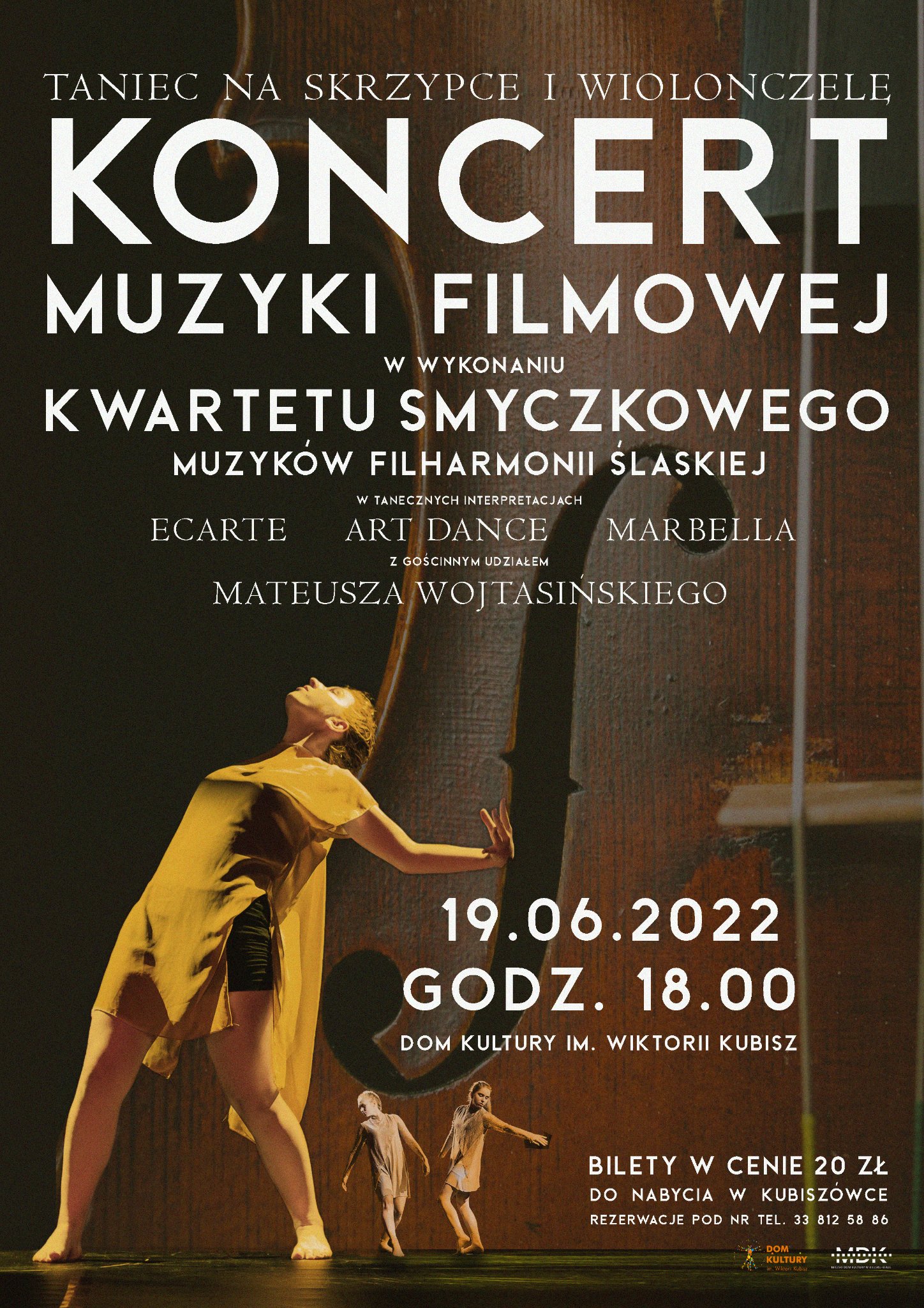 Zagra kwartet smyczkowy muzyków Filharmonii Śląskiej. Zatańczą zespoły taneczne Kubiszówki: Teatr Tańca Ecarte, Art Dance i Marbella oraz Mateusz Wojtasiński – aktor, tancerz, choreograf od 2014 r. związany z Teatrem Polskim w Bielsku-Białej!