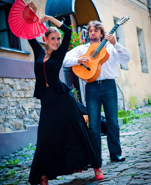 z akompaniamentem gitary i cajonu (hiszpańskiego instrumentu perkusyjnego)
