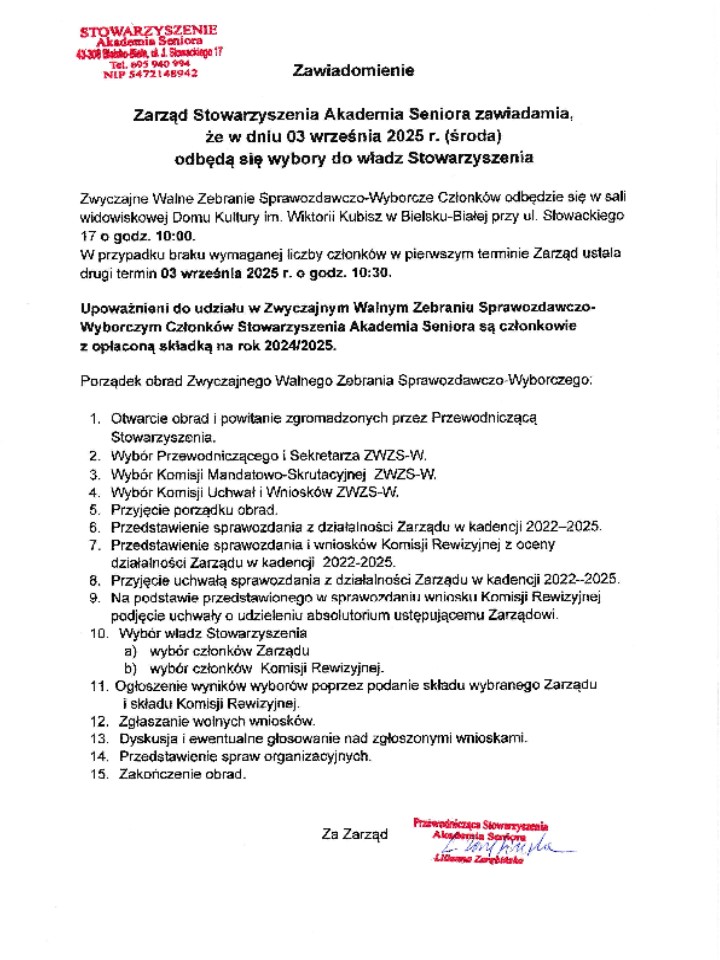 od Twojej obecności na najbliższym Walnym Zebraniu Stowarzyszenia?