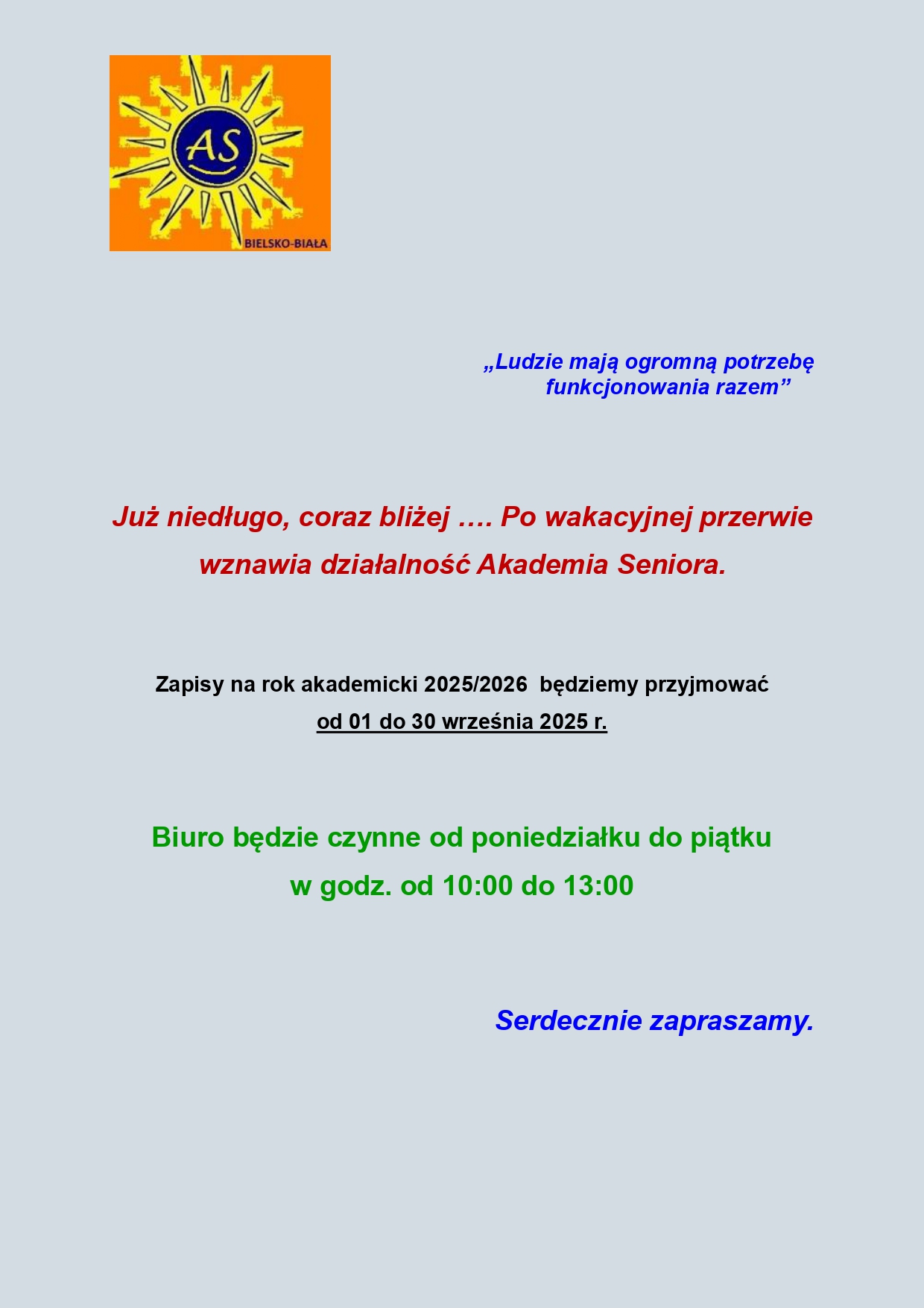Dlatego prosimy Cię o obecność.