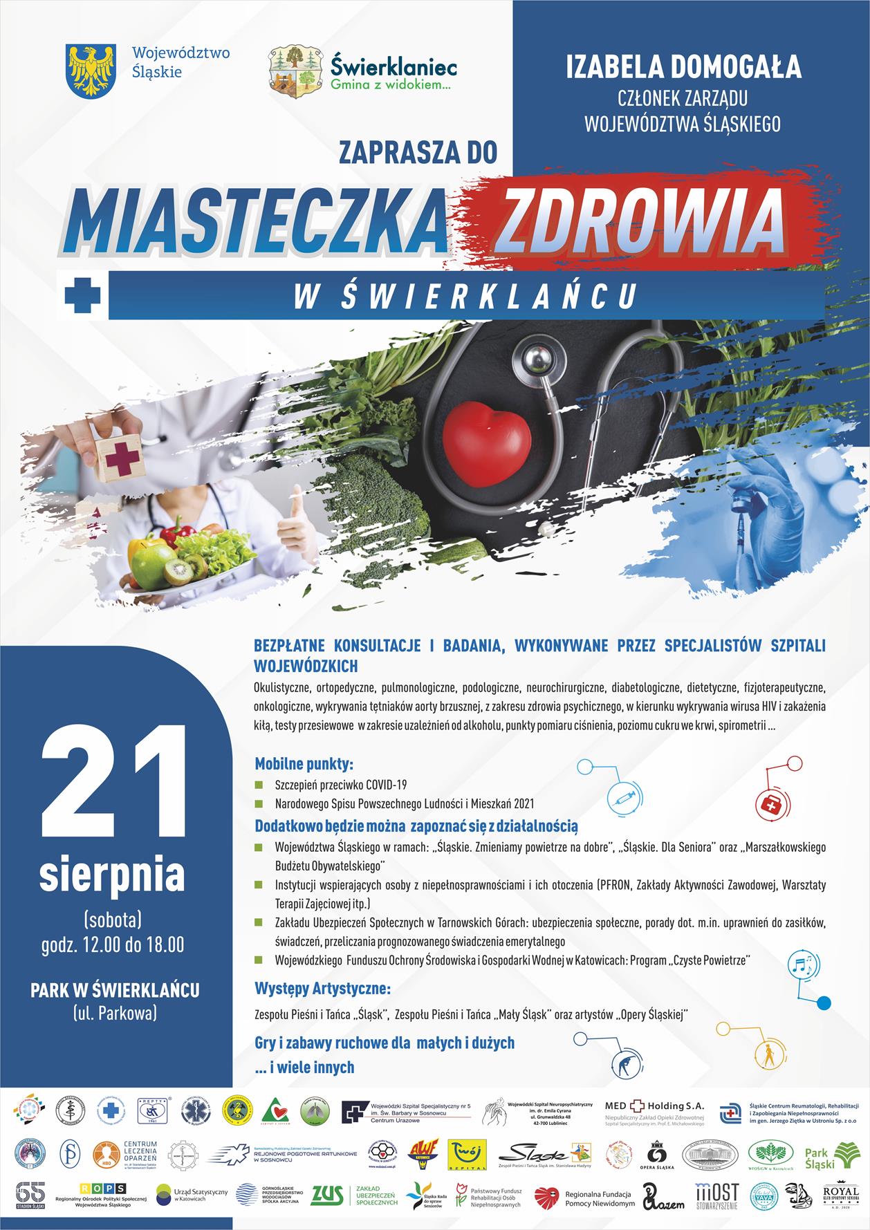 W dniu 21.08.2021 r. zapraszamy do Miasteczka Zdrowia w Świerklańcu w ramach którego będzie można skorzystać z: