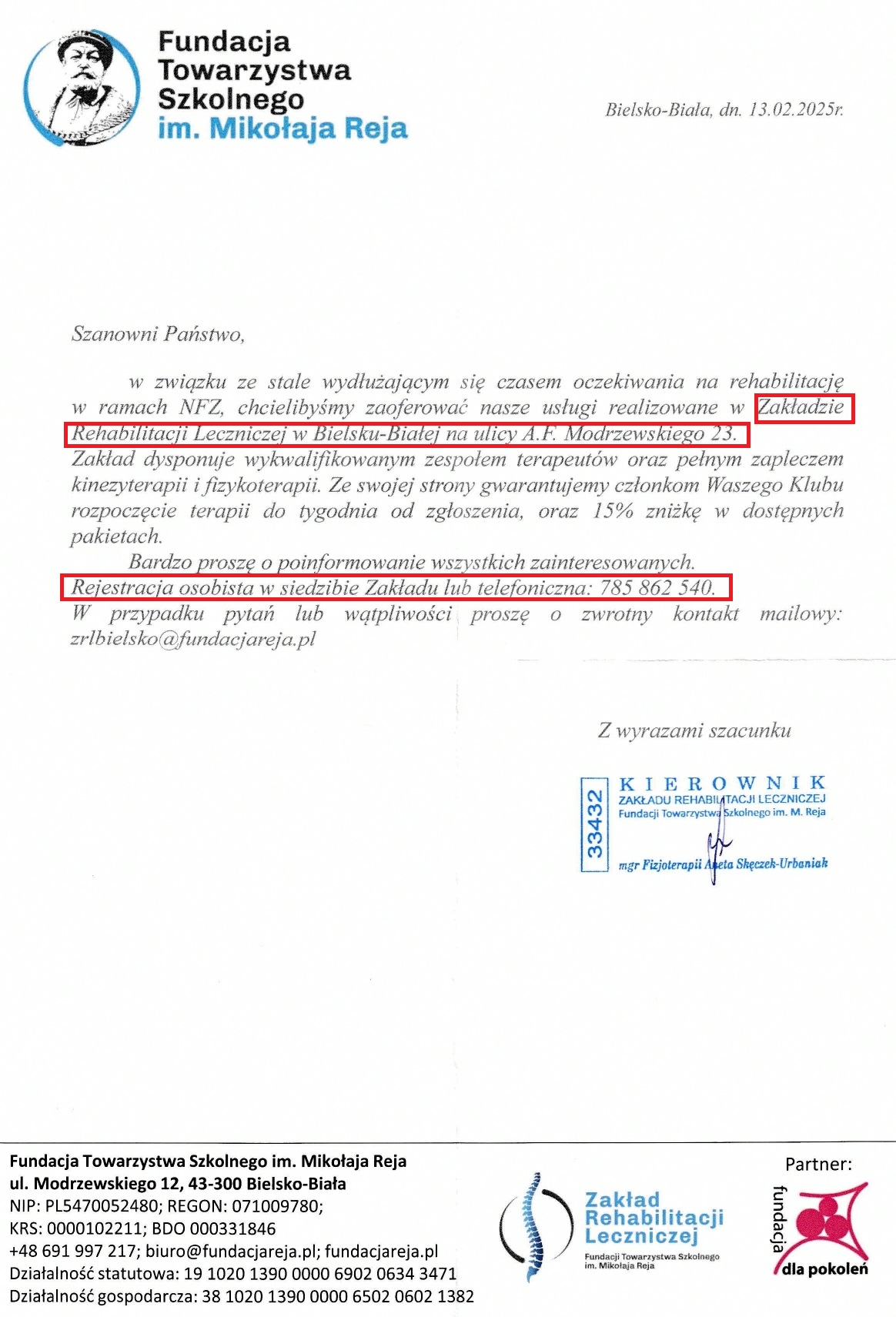Zaproszenie na rehabilitację w ramach NFZ